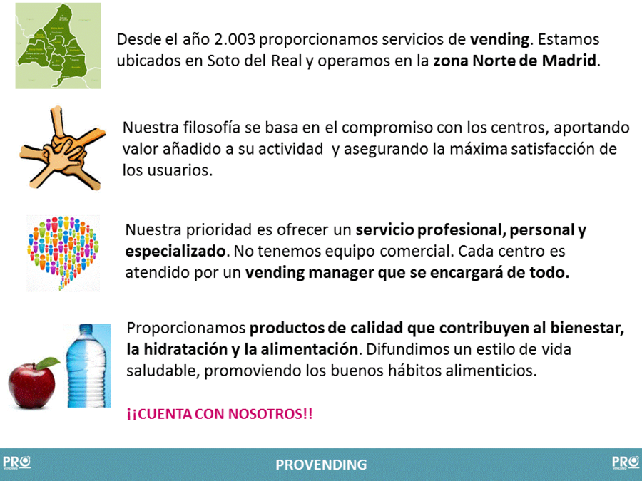 ___________________________________ SOLUCIONES DE VENDING PARA EL ÁMBITO PÚBLICO Y PRIVADO INSTALACIÓN Y MANTENIMIENTO TOTALMENTE GRATUITO CENTROS EDUCATIVOS, DEPORTIVOS, SANITARIOS, OFICINAS, ETC. ___________________________________